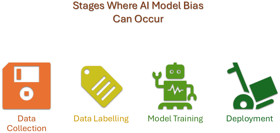 - Cognitive Bias: Developers’ own unconscious biases or stereotypes can influence data collection, labeling, feature selection, and model evaluation. Confirmation bias, where developers look for evidence that confirms their existing beliefs, is a common example.
