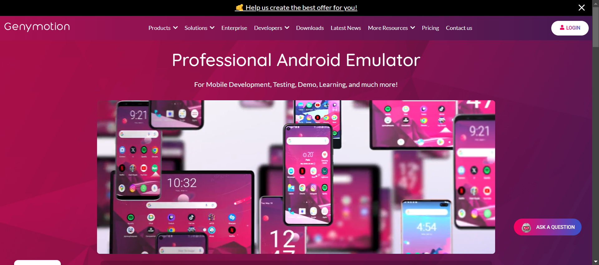 Genymotion is an advanced Android emulator known for its flexibility, powerful features, and performance, making it a popular choice for testing and developing Android applications. It stands out for its focus on providing a virtualized Android environment for various testing scenarios. Genymotion seamlessly integrates with Android Studio and supports a wide range of Android versions, allowing users to create and manage virtual Android devices with different configurations, including various Android versions, screen sizes, and hardware characteristics. It is also compatible with many testing frameworks like Espresso, Appium, and Robotium. They offer various paid plans that include different features.