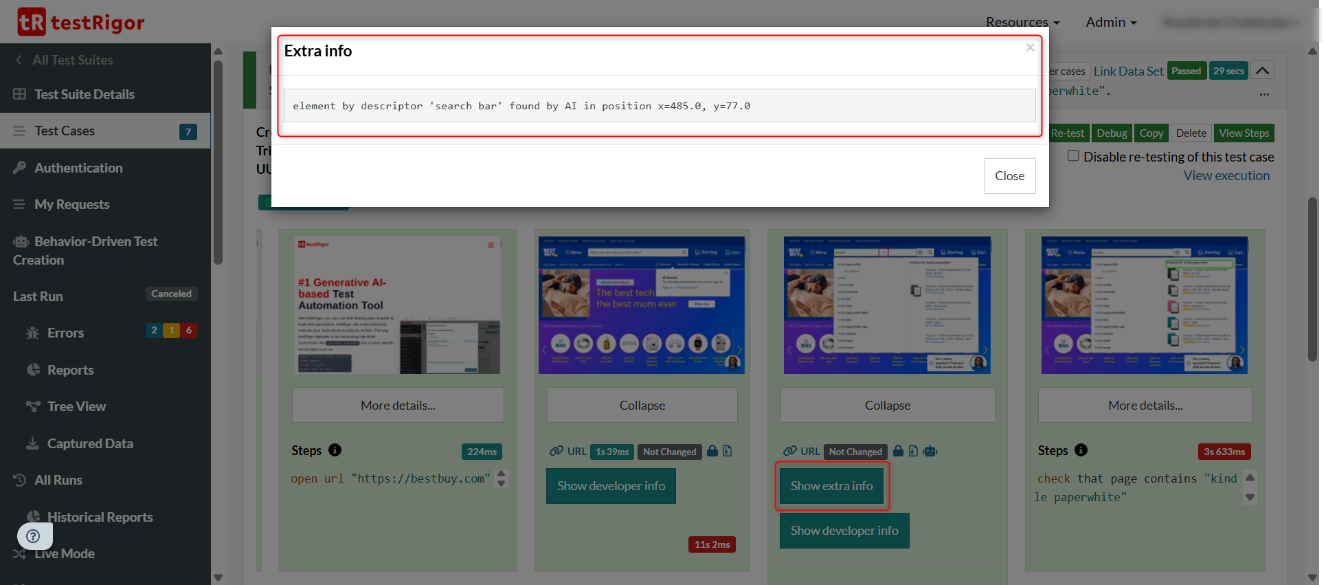 But what did the AI engine do when it encountered that command? To help understand this, testRigor offers a simple overview of what the AI engine did at that step. Here’s a preview of this.