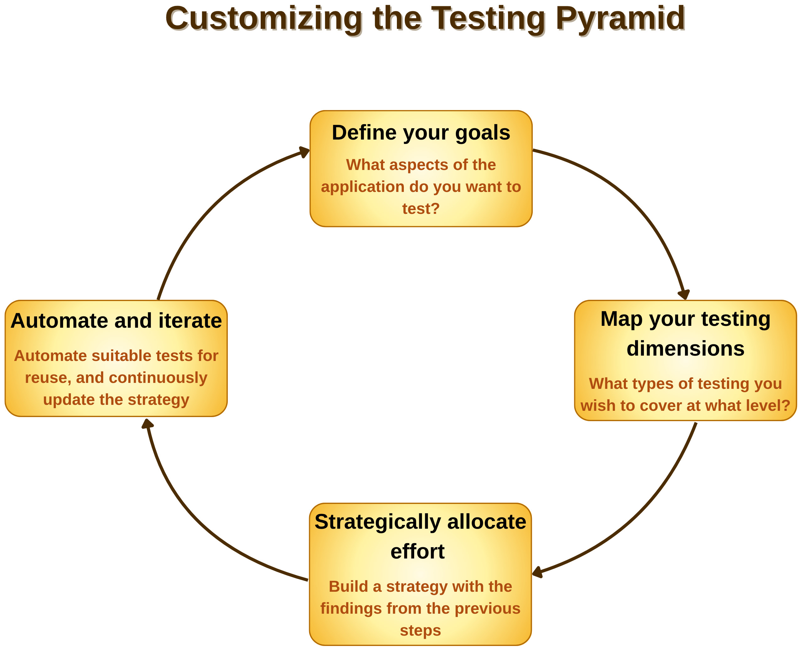 With your goals and testing dimensions in hand, you can now decide how to allocate your testing effort. If your goal is high reliability and performance, you might create a “pyramid” with a wider middle section for integration tests and a larger top layer for load testing. If you’re building a UI-heavy app, you might have a broad base of component-level tests and a focused set of visual regression tests. The key is to be intentional about where you invest your time and resources, based on what matters most.