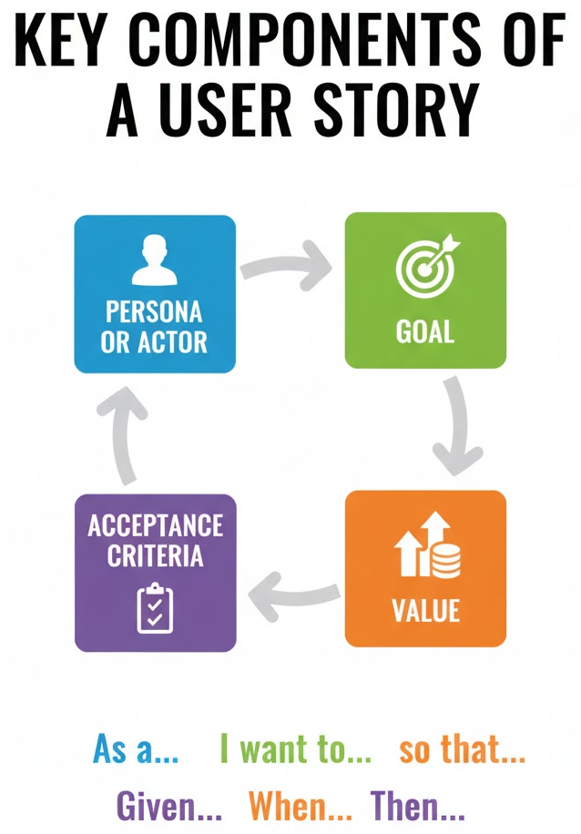 This structure emphasizes the user’s role, their desired action, and the benefit they expect to receive.