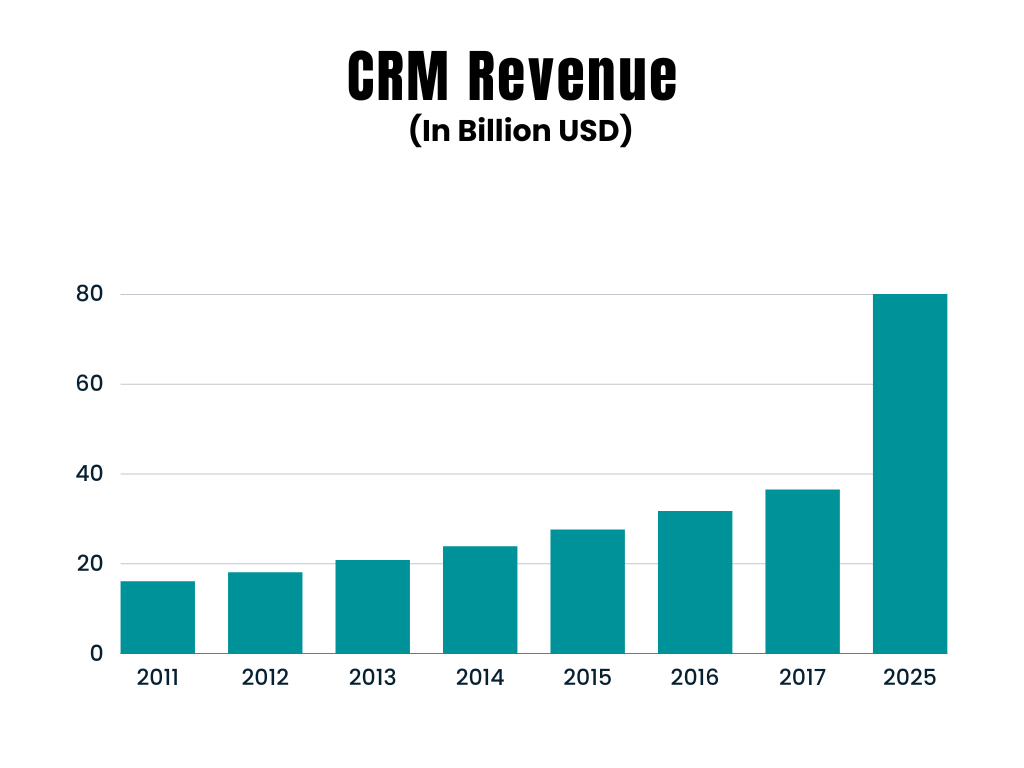 According to Grand View Research, CRM revenue is expected to be $80 Billion by 2025. It is no surprise that today 91% of businesses with more than 11 employees, leverage CRM to help their business grow.