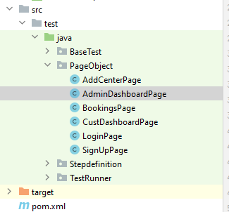 Below is a sample project structure of the page object model. Here, each web page is represented as a Java class file.