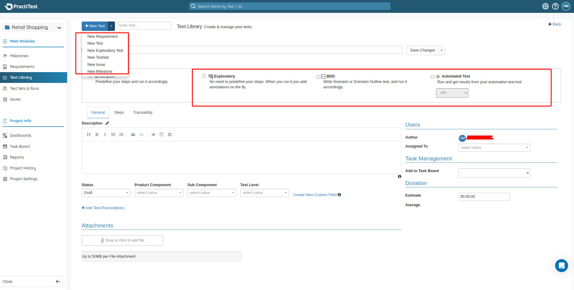 Creating Test Case in PractiTest