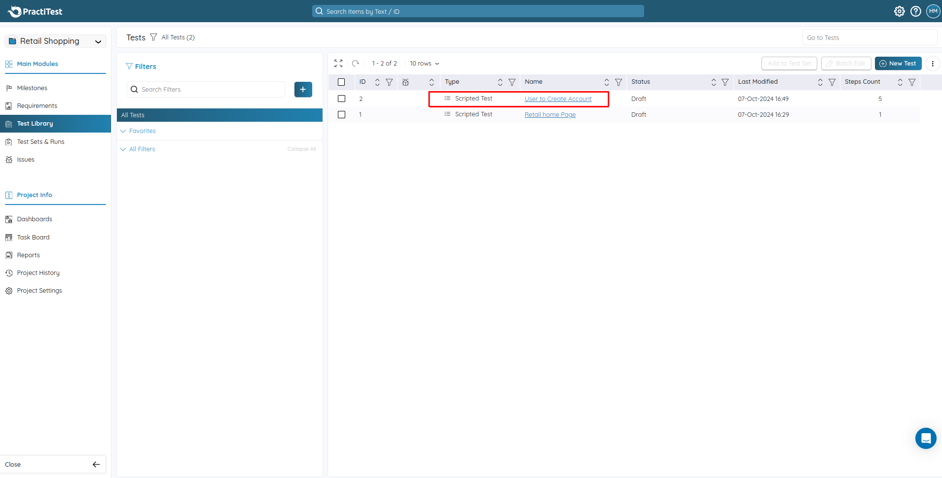 Step 5: The created test case can be viewed from the Test Library.