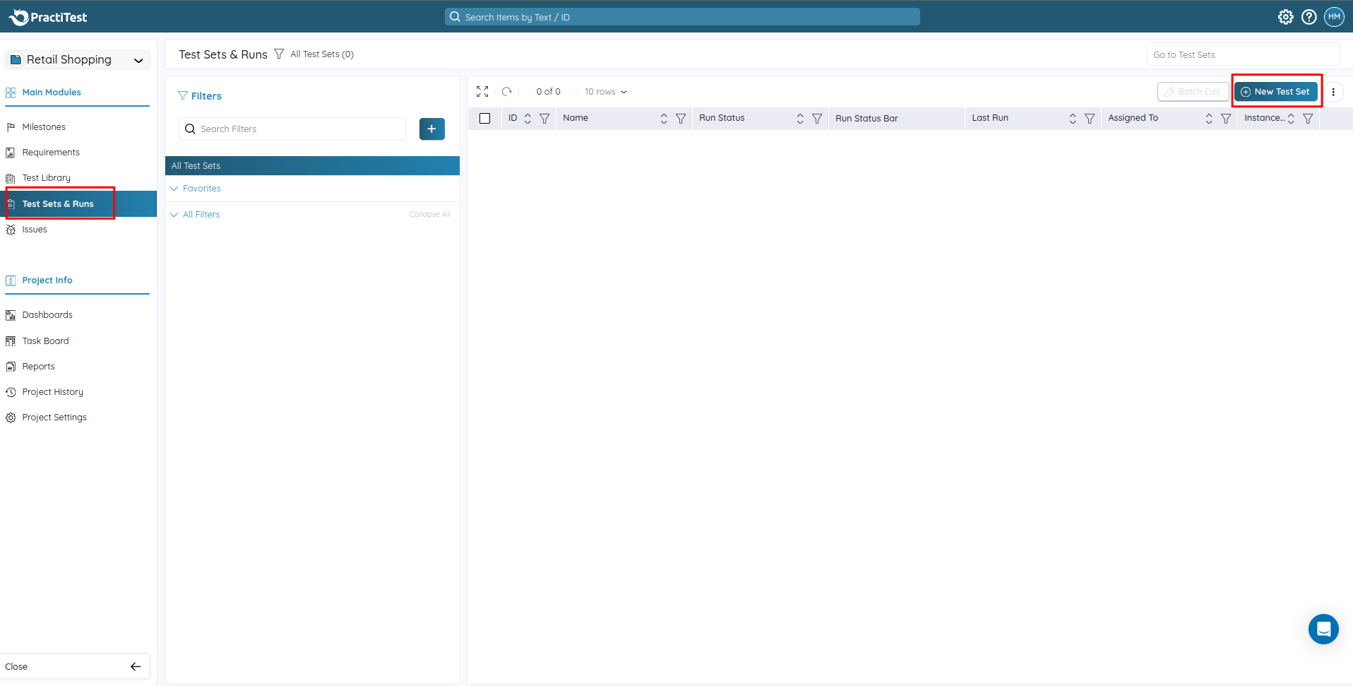 Creating Test Set in PractiTest
