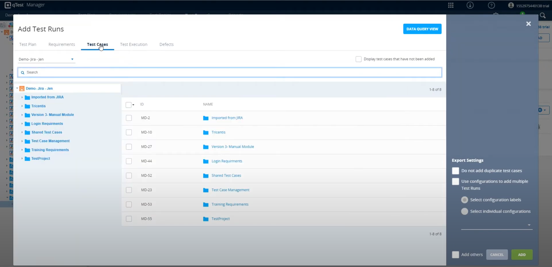 Step 12: Now, the Add Test Runs popup will appear. You can add test cases from the Test Plan and Requirements or import test cases from the Test Cases modules.