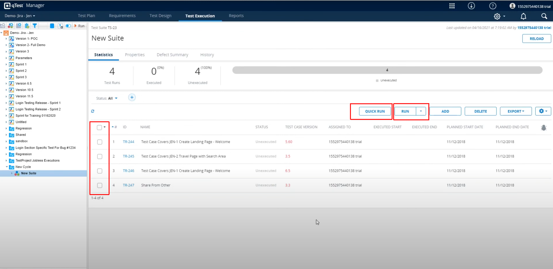 - Quick Run – You already executed the test cases, now just need to update the results as a batch.