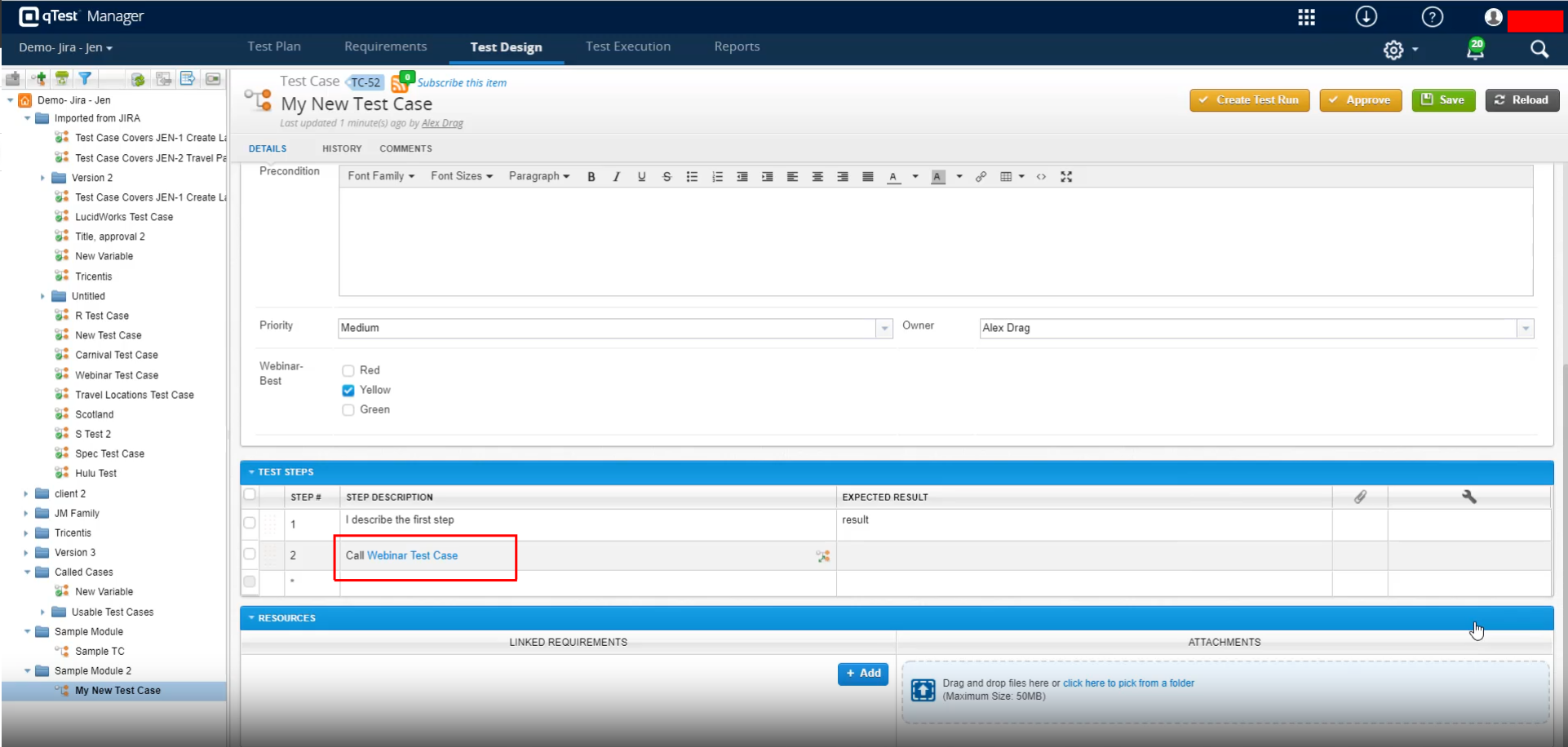 Step 5: If you need to add another test case, which may be a common one, you can do that by clicking the Call Test Case icon from a new Test Step.