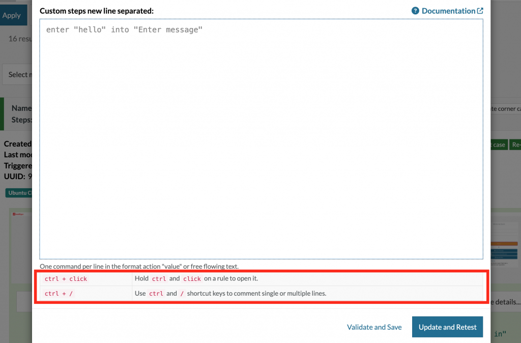 testRigor now supports the functionality of adding or removing comments several lines at a time.