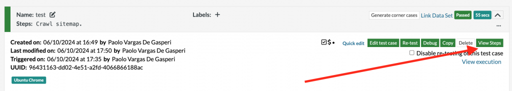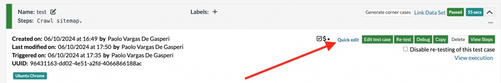 We added the ability to run a single test via Command Line using the test case UUID, below you can see where to find the UUID of a test case: