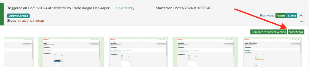 We added a button to view the steps of any test execution in the Edit Test Case page. This button can be found by expanding the test case with the down arrow on the far right of the test execution, then clicking View Steps to the right of Compare to