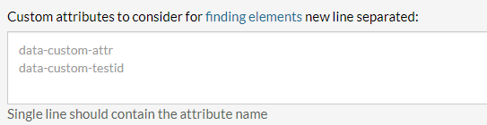 • Users can find the place to define these attributes in Settings -> Advanced in the Custom attributes to consider for finding elements new line separated: field.