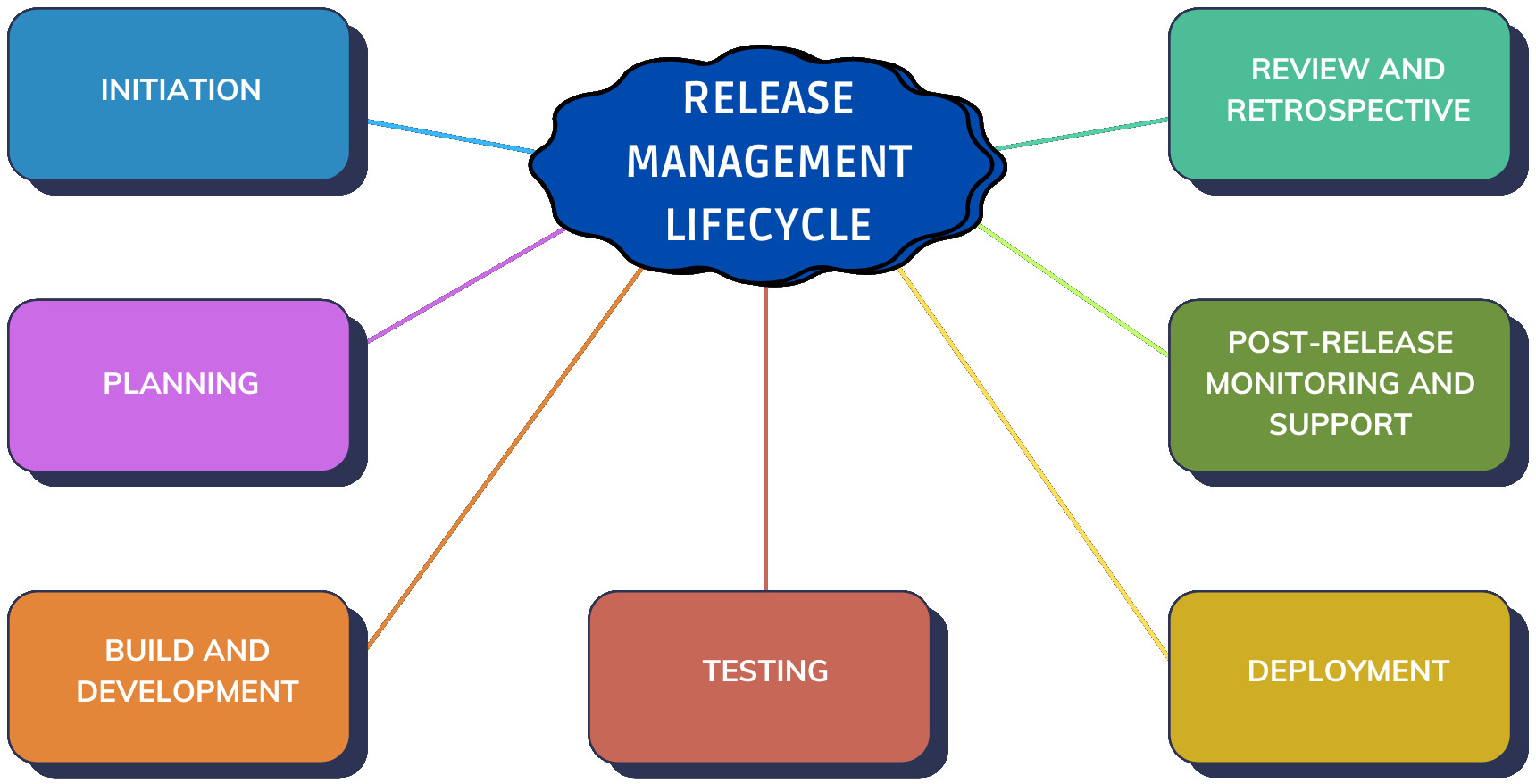 - Initiation: The initiation stage focuses on setting the foundation for the release, including the goals, scope, and strategies for the release. In this phase, stakeholders are identified, requirements are gathered, and risks are assessed to provide a clear understanding of what is to be released.