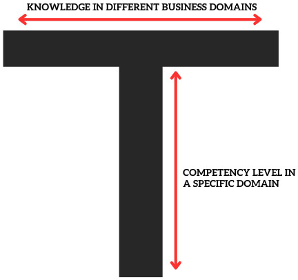 T-shaped professionals are admired because of their ability to be flexible, adaptable, and work effectively across teams. Specialize and make a real impact in their area, while also knowing the bigger picture and enabling teams to move forward together.