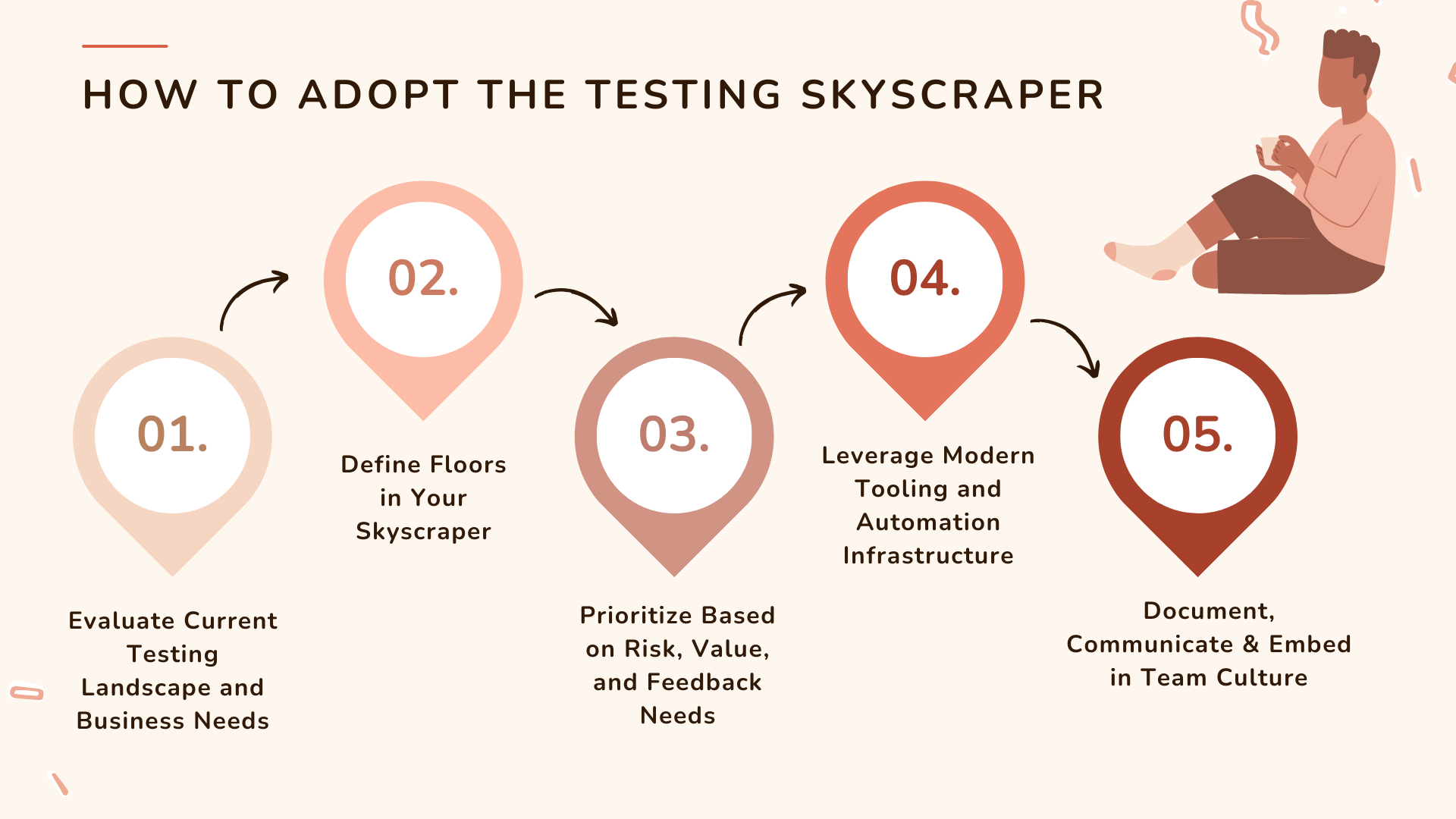 Clearly document your test floors, their purpose, and the reasoning behind your decisions so the whole team understands the architecture. Communicate how this model supports risk mitigation and continuous improvement. Treat the skyscraper as a living structure, adjusting it over time and reinforcing its principles across the team.