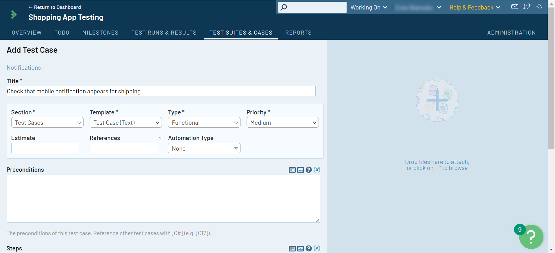 Step 3: Start adding test cases for the test suite. You can even import test cases using TestRail’s import capabilities.