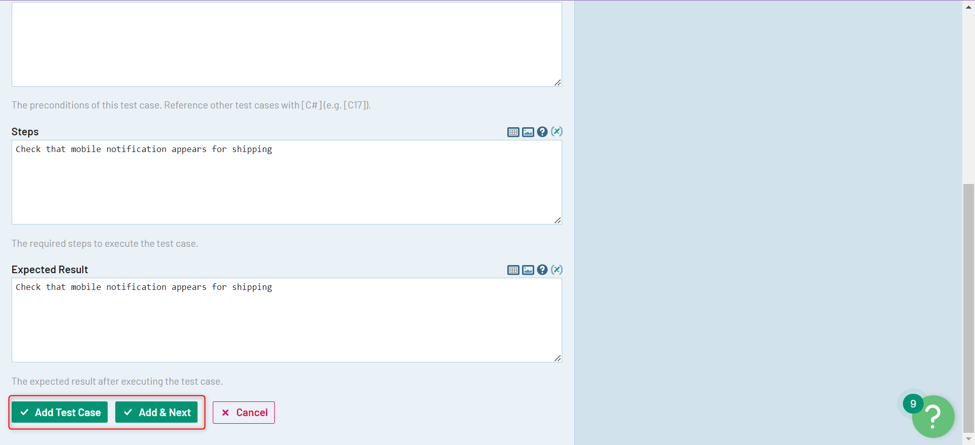 Step 5: Save your test case. You can even save the existing test case and directly have TestRail open a new form for you to create another test case.