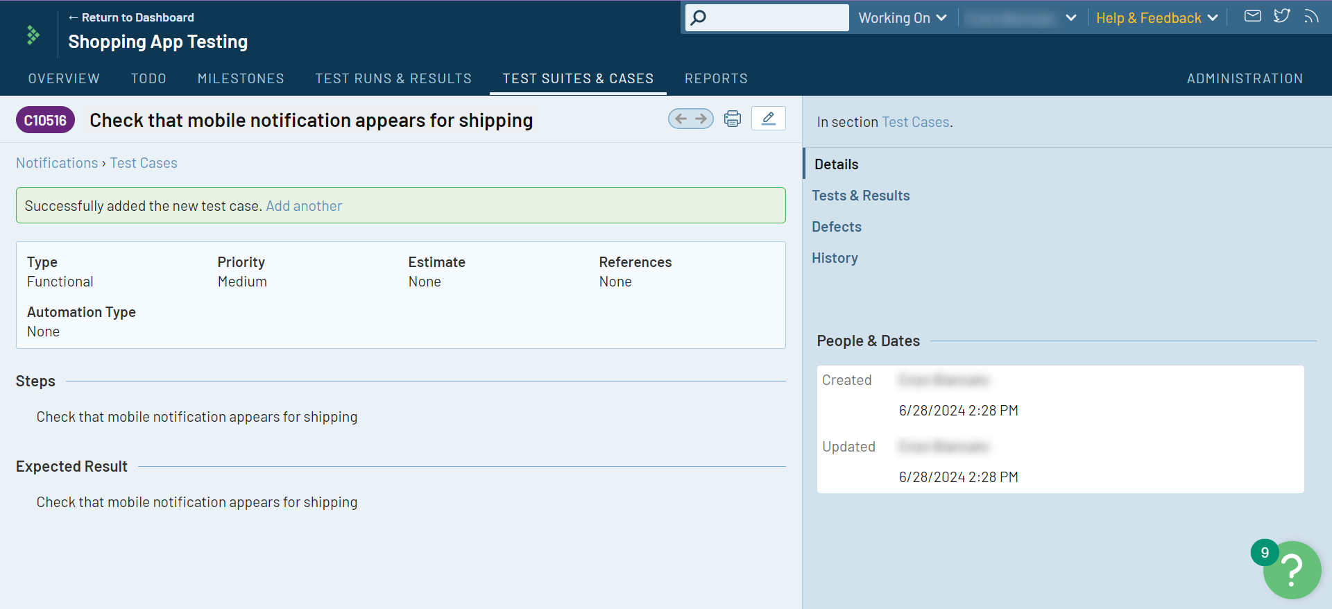 Step 4: Add details for the test case.