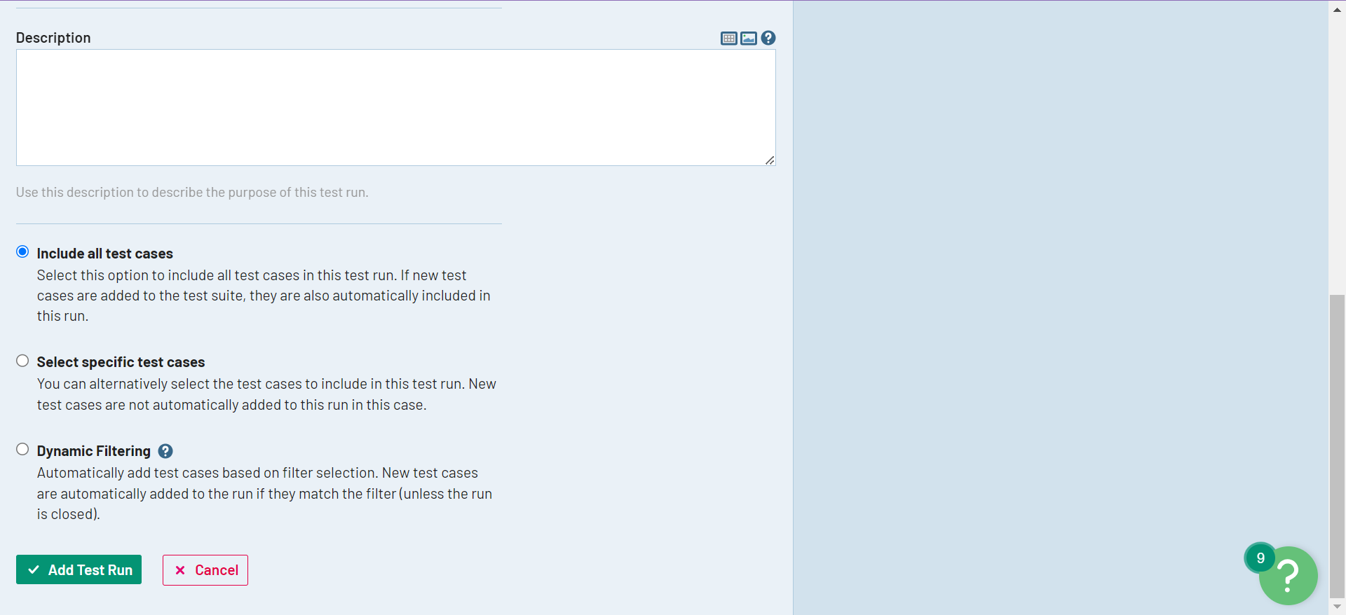 Step 2: Fill in the details for the test run and choose what test cases you want to add as a part of this run. Click Add Test Run.
