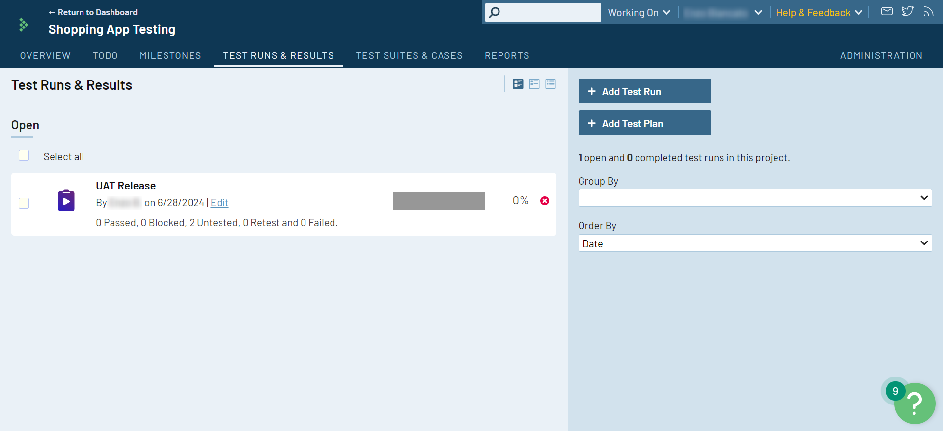 So far, you have a project that contains test suites, and each of these test suites contains test cases. Now, you need to create test runs that will help you track test executions.