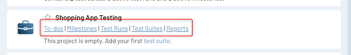 Step 1: To add test suites to a project, you can do so by going to the Dashboard, where your project is listed. There are a couple of options, one of which is to add test suites.