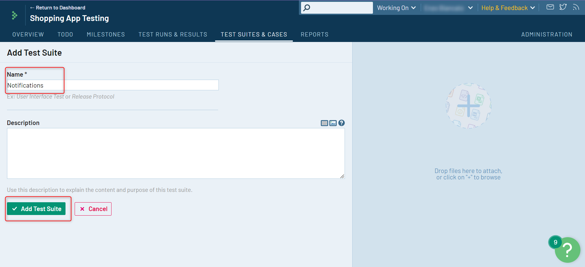 Step 3: Provide details for the test suite and click Add Test Suite.