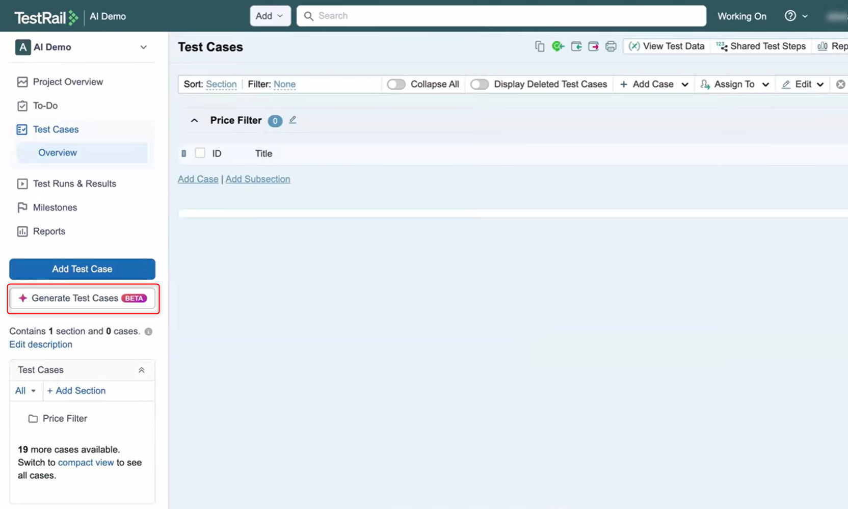 TestRail’s AI Feature