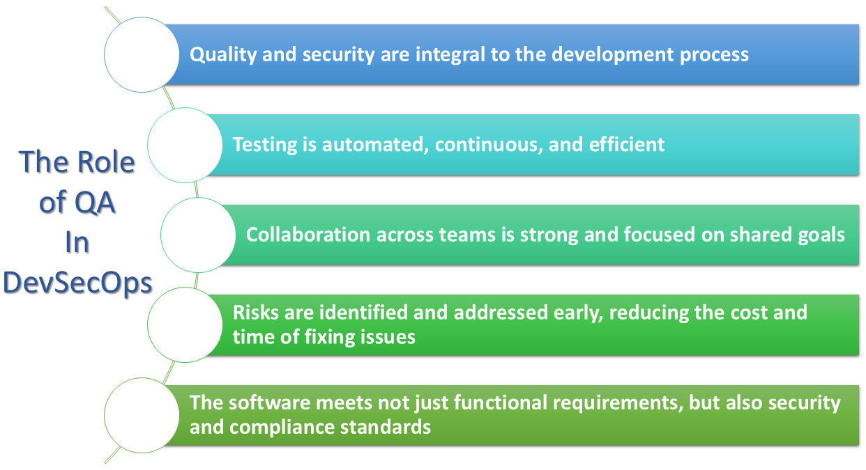 QA works closely with developers, security teams, and operations to ensure smooth integration and delivery.