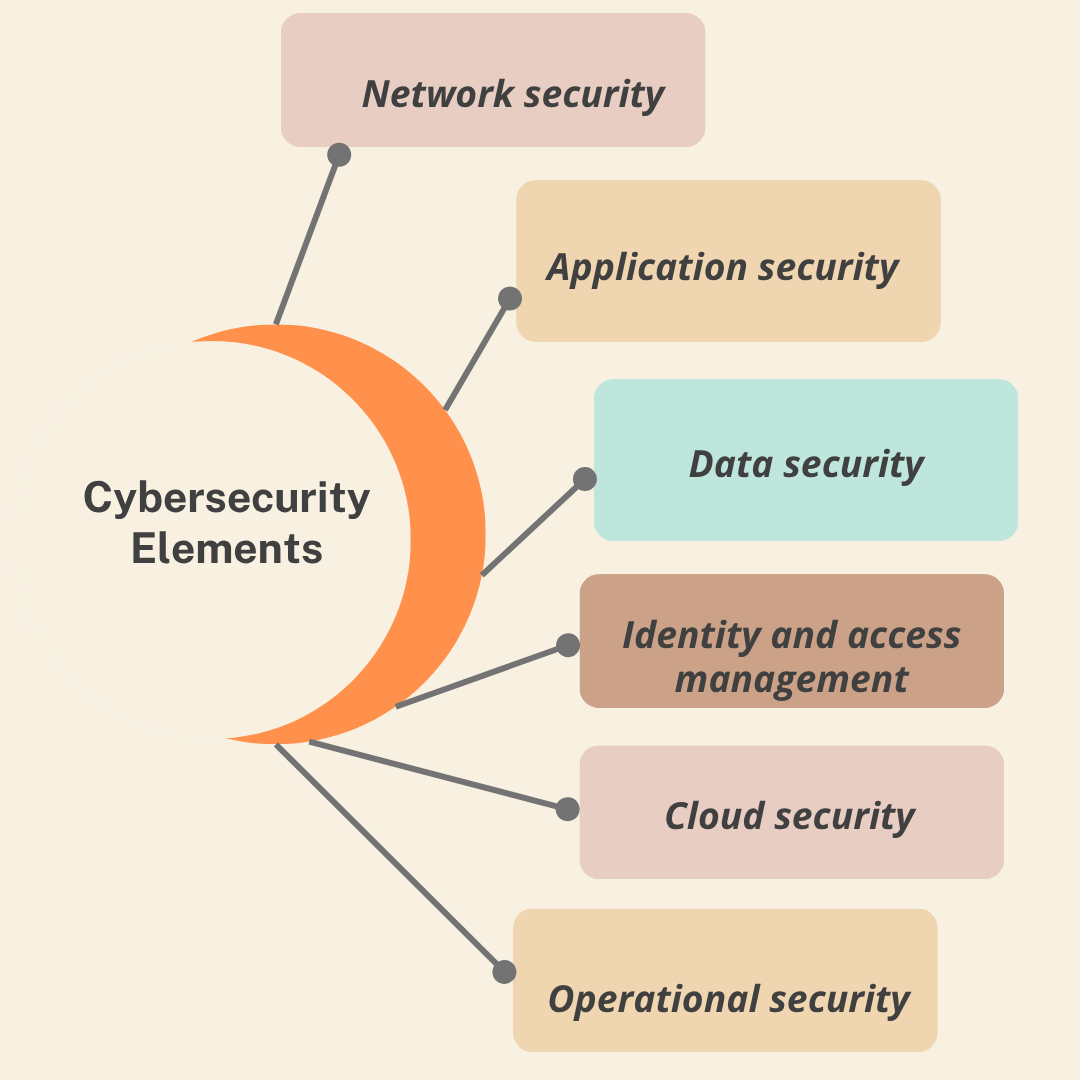Cybersecurity is a set of practices and protocols that protect systems by implementing security measures, such as firewalls, encryption techniques, and authentication methods. This, in general, involves the following elements: