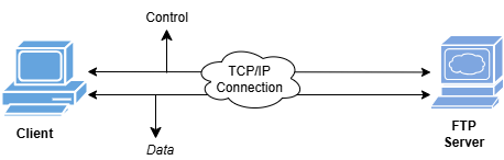 FTP is used to transfer files between systems over a network. SFTP is a secure variant of FTP using SSH. The process of file transfer between the Client and the FTP server is shown below: