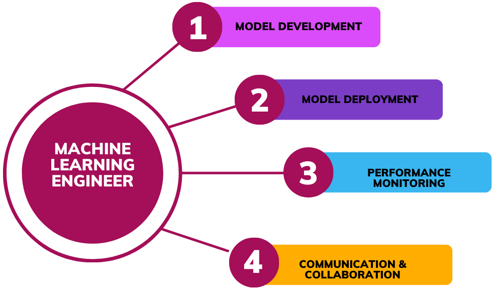 The primary goal of ML engineers is to develop algorithms that perform tasks that are not explicitly programmed but learn and improve from experience. Generally, an ML engineer performs the following functions: