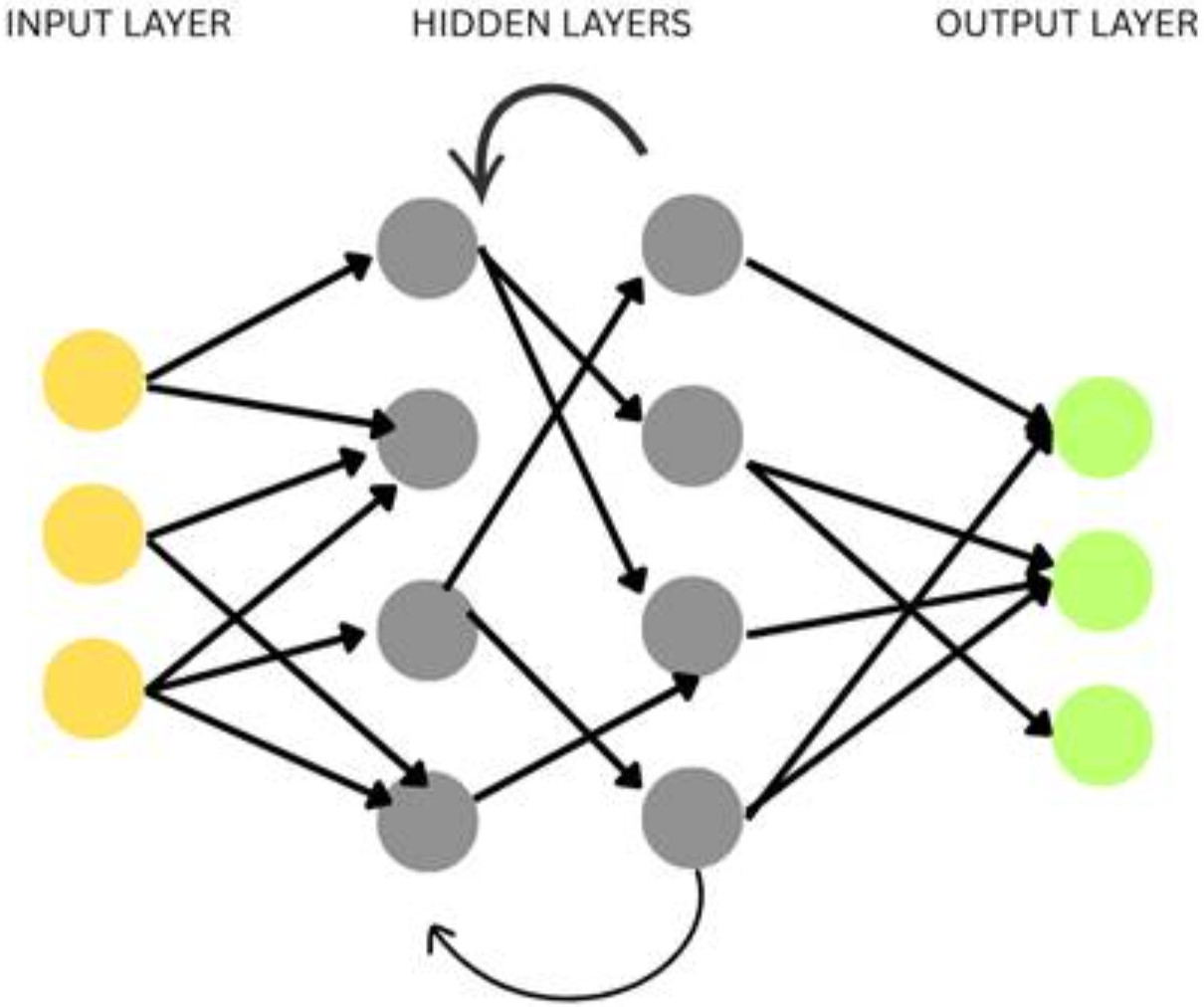 The layered structure of neural networks simulates the manner in which the human brain functions. An input layer, one or more hidden layers, and an output layer are all main components of this structure. Weighted links enable the neurons, also called as nodes, that make up the layers; allow them to communicate with one another. Numerical values in a dataset or pixel values of an image are all instances of raw data that are pushed to the input layer. The hidden layers then receive these inputs.