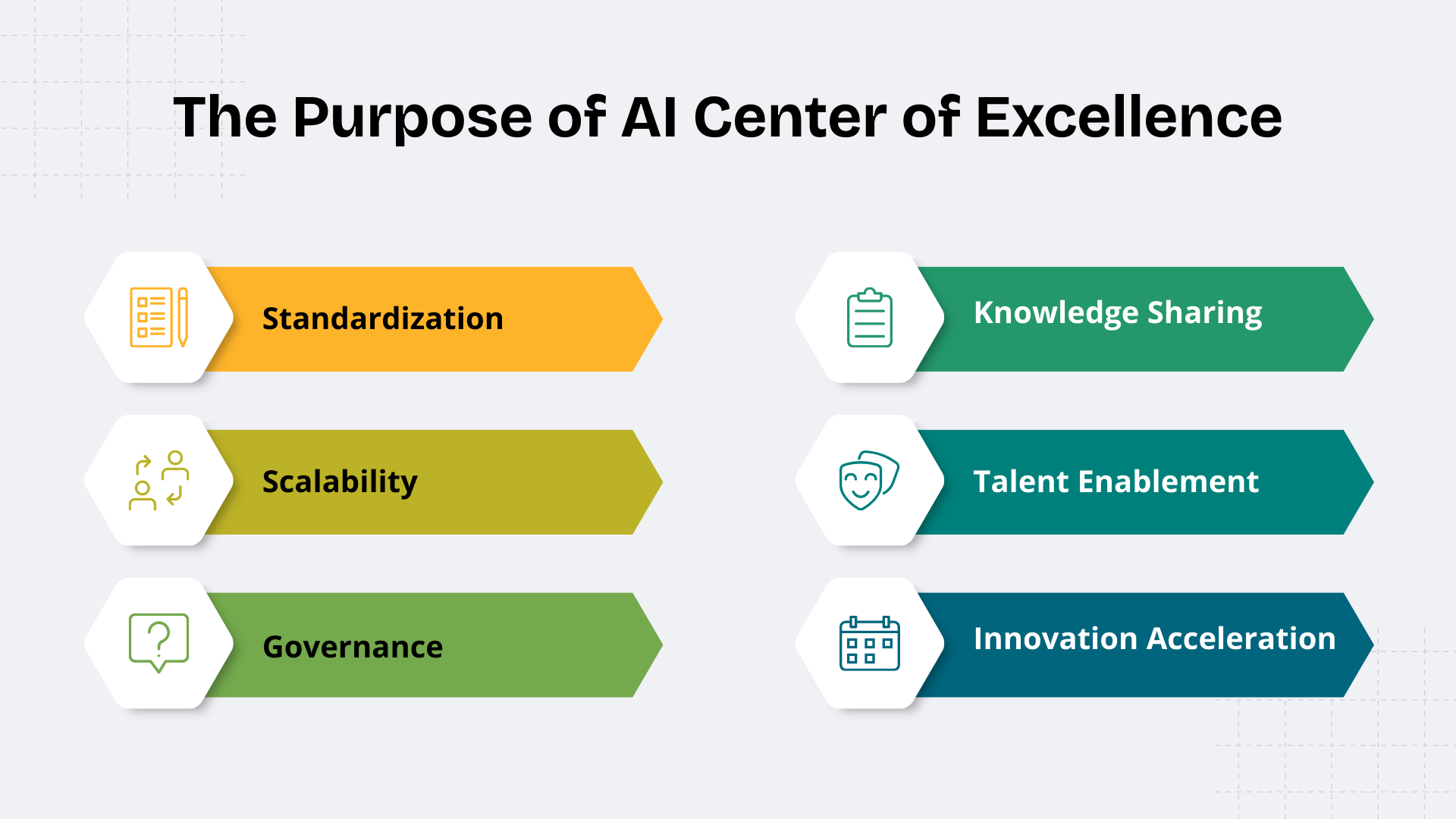 The AI Center of Excellence (CoE) needs sound foundations to help the entire organization decide on things to do, set targets around those activities, and get them done. They ensure that AI projects are scalable, ethical, and aligned with business objectives. They also leave room for teams to develop original ideas.