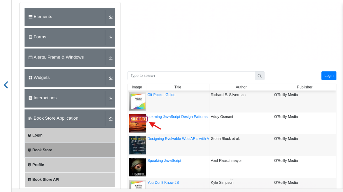 click "Book Store Application" click "silence" using OCR