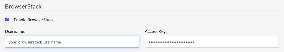 • To find out what your Username and Access Key are, open your BrowserStack account and click on Access Key on top of the page. You will see the credentials data.