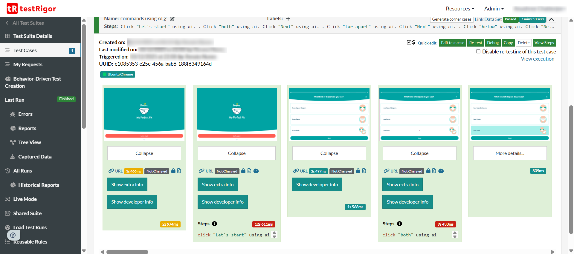 - Self-healing of Tests: testRigor constantly tries to make sure that your test runs are not flakey and that you’re only bothered if there’s a real issue. The tool uses AI to heal tests in the event of basic UI changes, such as if the UI element’s label or position changes. Using testRigor’s Vision AI and self-healing capabilities, your test cases can “look on the screen” for the alternative way of doing what was intended as opposed to failing. This is a huge relief from a test maintenance standpoint. Read: AI-Based Self-Healing for Test Automation.