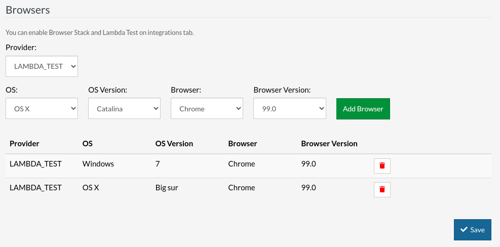 Once integration is enabled, you can configure LambdaTest as provider of our test executions.