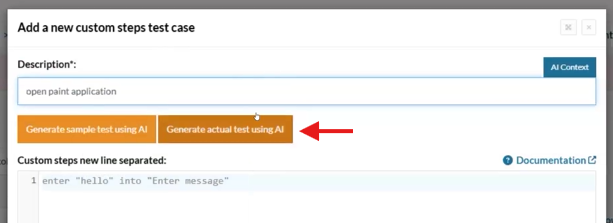 Caption: AI description test case generator location.
