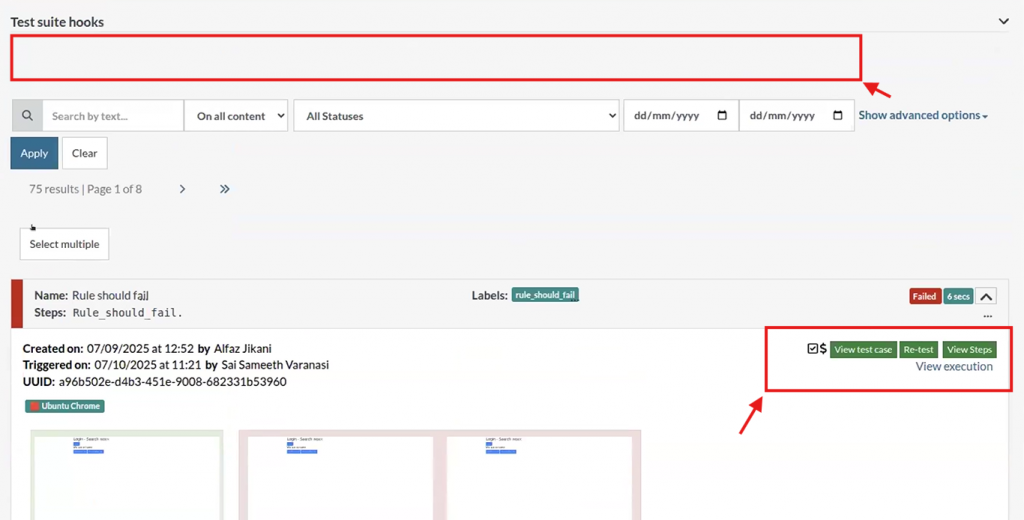 Streamlined User Interface: Users with read-only access will not see action buttons such as “Add test case,” “Find and Replace,” or “Edit test case.” Input fields are disabled too, and we make an exception for those buttons necessary for viewing, like “Retest,” “View Executions,” and Reports.