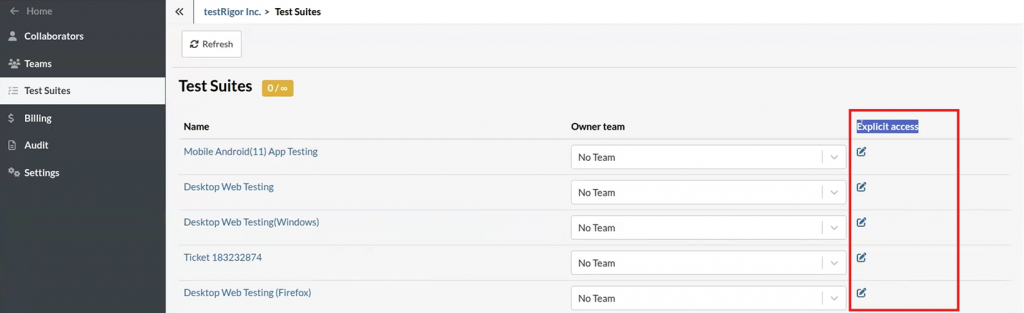 Flexible Application: Deny access to users not belonging to any team or to restrict visibility for sensitive test suites.