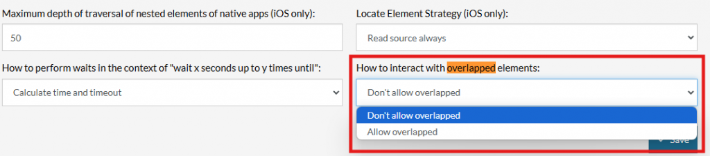 • Don’t allow overlapped: Selecting this option ensures that only non-overlapped elements are targeted, preventing interactions with hidden or obscured elements.