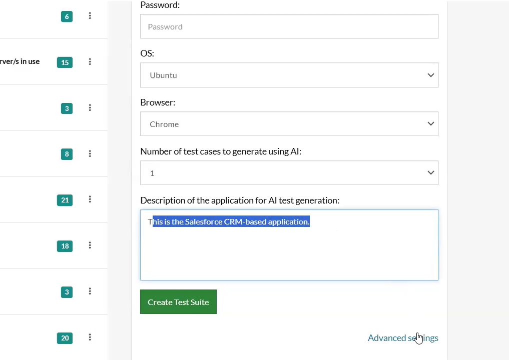 Caption: Adding Salesforce domain in Test Suite details.