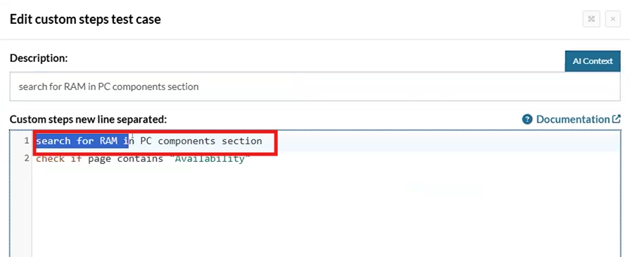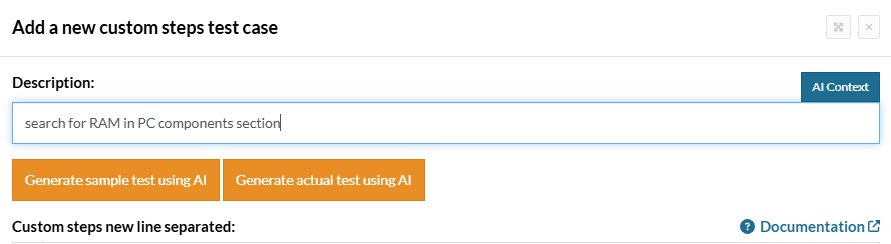 As previously mentioned last week, AI can use reusable rules if it considers that they’re required in the description (See link here). Now, it does not only use them to build the test case, but it also asks for the parameter(s) value(s) when they become part of the AI built test case, and replace it in the rule: