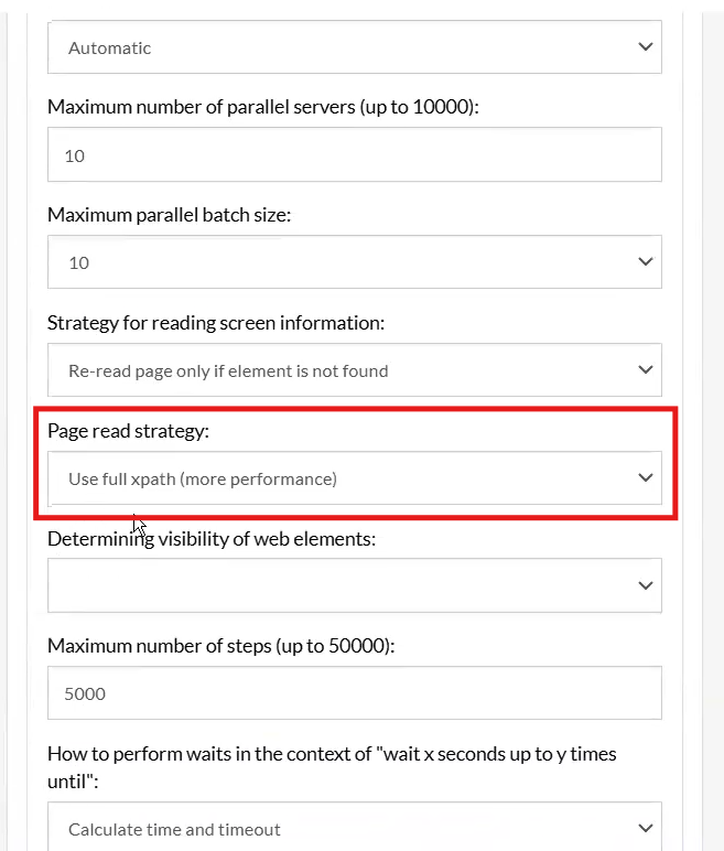 Page read strategy - Use full XPath(more performance). -