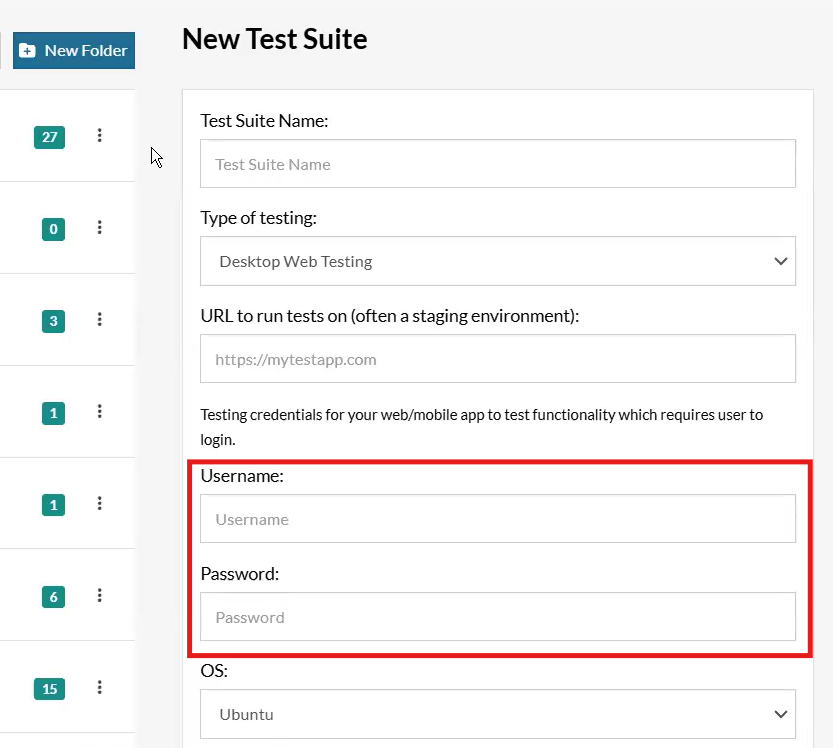 Then, the username and password section become mandatory: