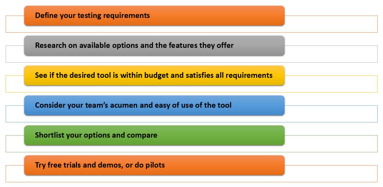 Before you start testing with a tool, you need to pick said tool. To do that, you need to consider the following points.